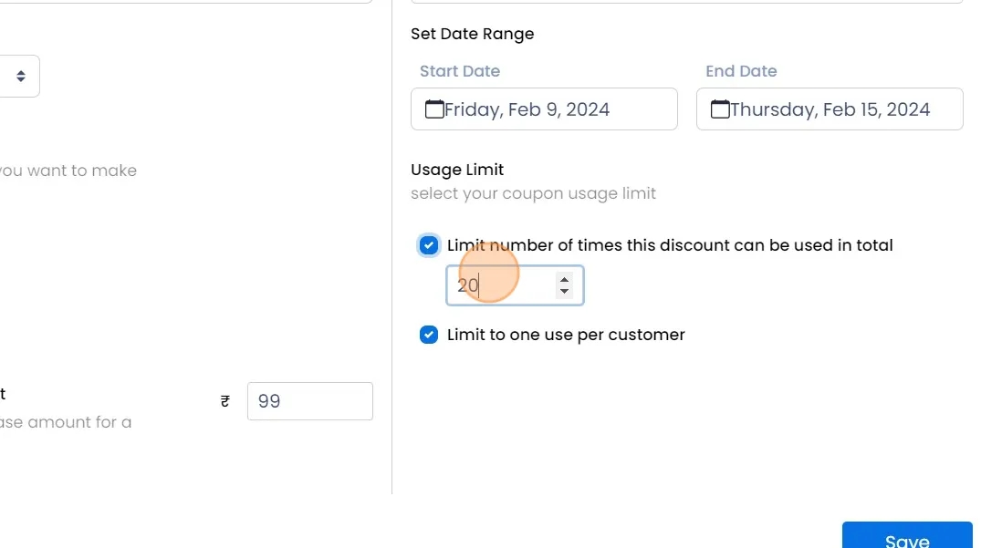 Set Date Range: Set a date range during which this coupon will be applicable, and it will automatically expire after that period.