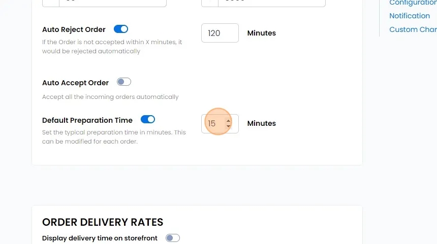 Set the default preparation time for orders which you can customize while accepting them. Riders should be shown the order preparation time to coordinate their arrival at the store accordingly, minimizing unnecessary waiting time outside the store.