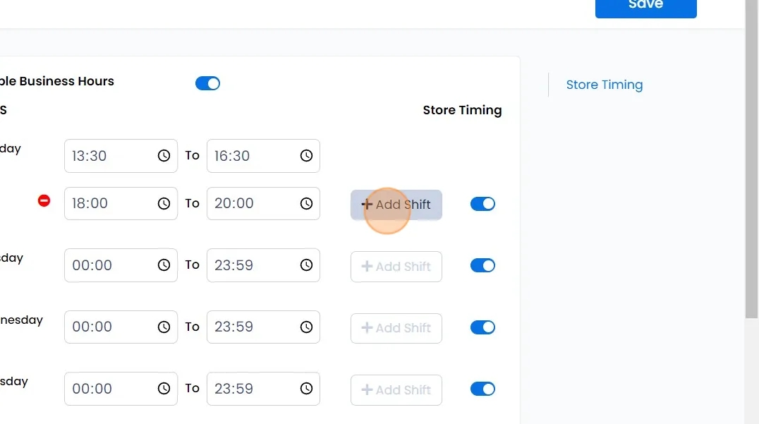 Use the "+ Add Shift" button to add multiple shifts for the day.