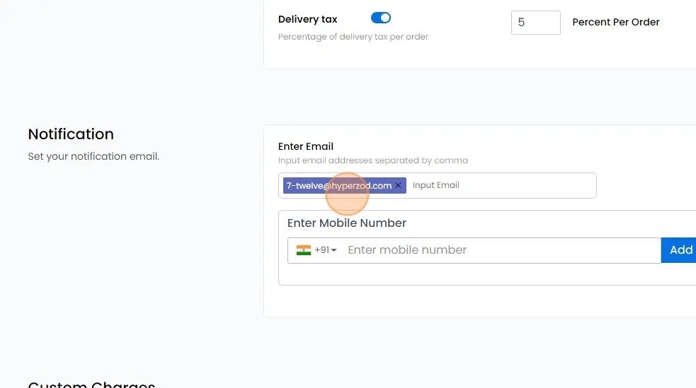 Email: Input the email addresses where you wish to receive incoming order alerts. You can add multiple emails separated by a comma.